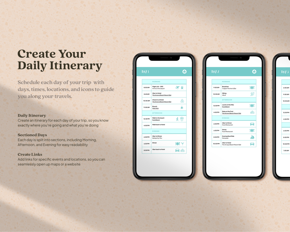 This travel planner works as the perfect: holiday planner, vacation planner, or any trip itinerary planner!